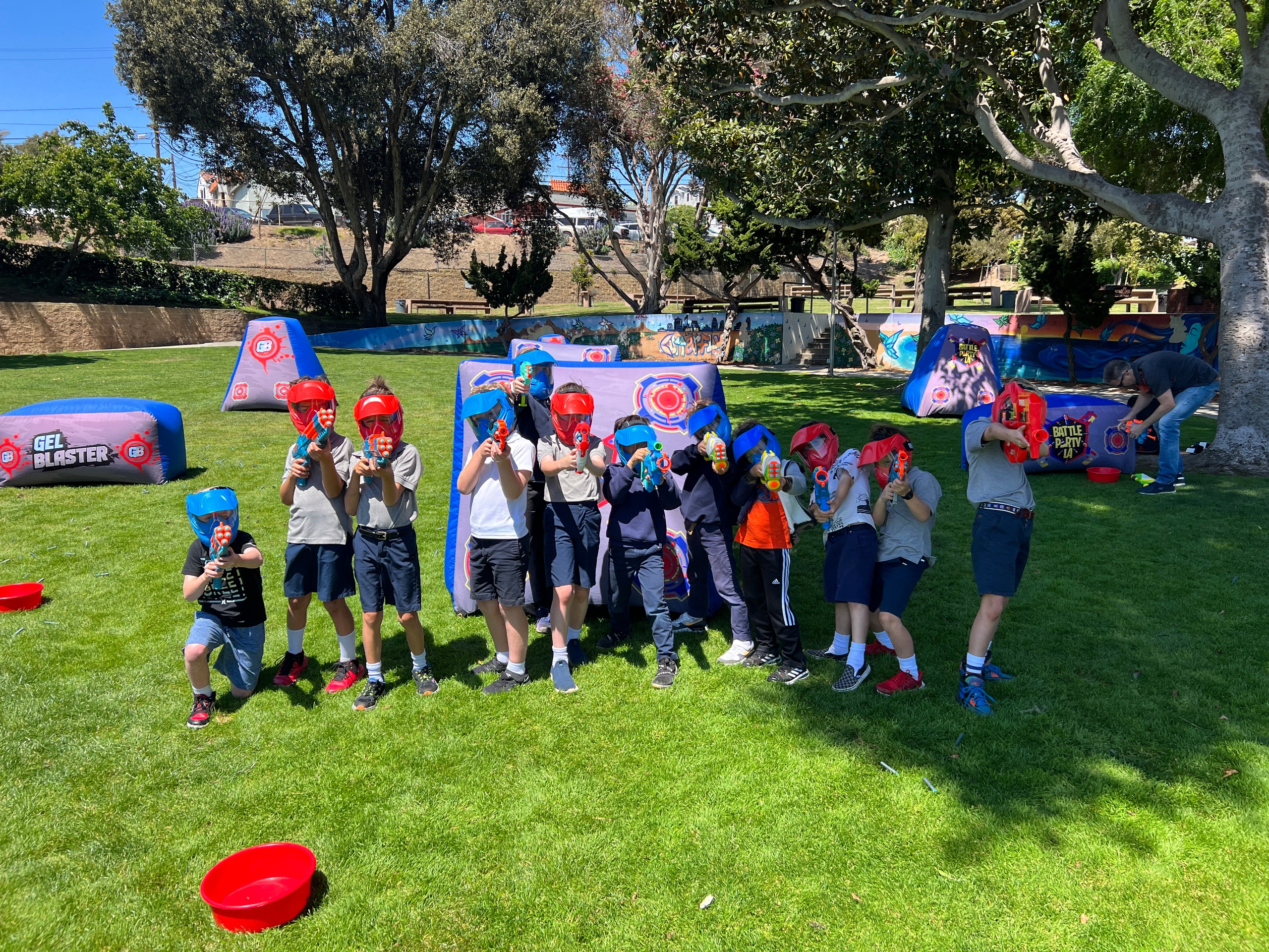Camp Have-A-Blast is primarily outdoors. All activities—except the Video Game Truck and certain special events—take place in grass park environments with access to shaded areas. Activities are planned with sun exposure, rest periods, and hydration in mind throughout the day.